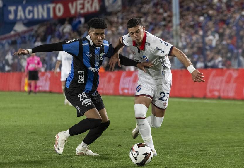 Kevin Amaro, de Liverpool, y Nahuel López, de Nacional, este domingo, en el Gran Parque Central.