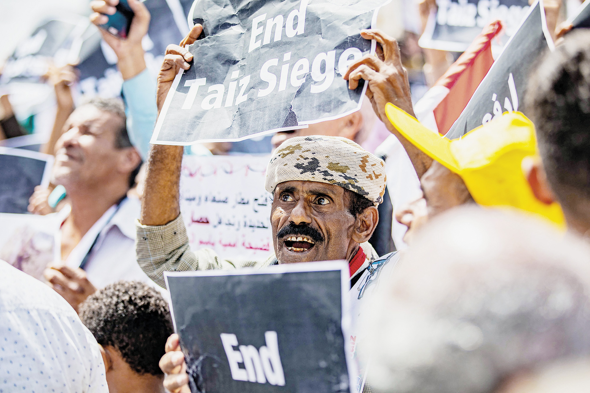 Manifestación por el “fin del asedio de Taez” exigiendo el fin del bloqueo impuesto por los rebeldes huzíes de Yemen el 25 de mayo.