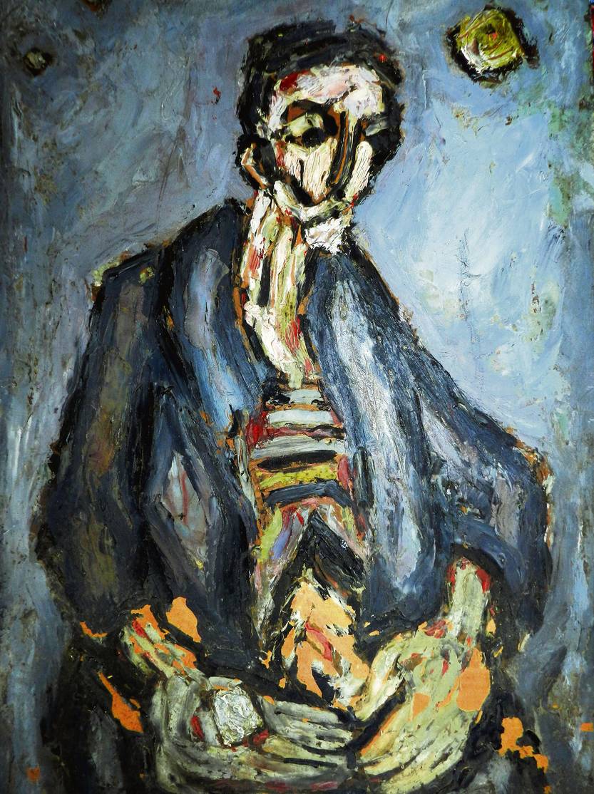 Ángel Damián, _Hombre y luna_, óleo sobre fibromadera.
