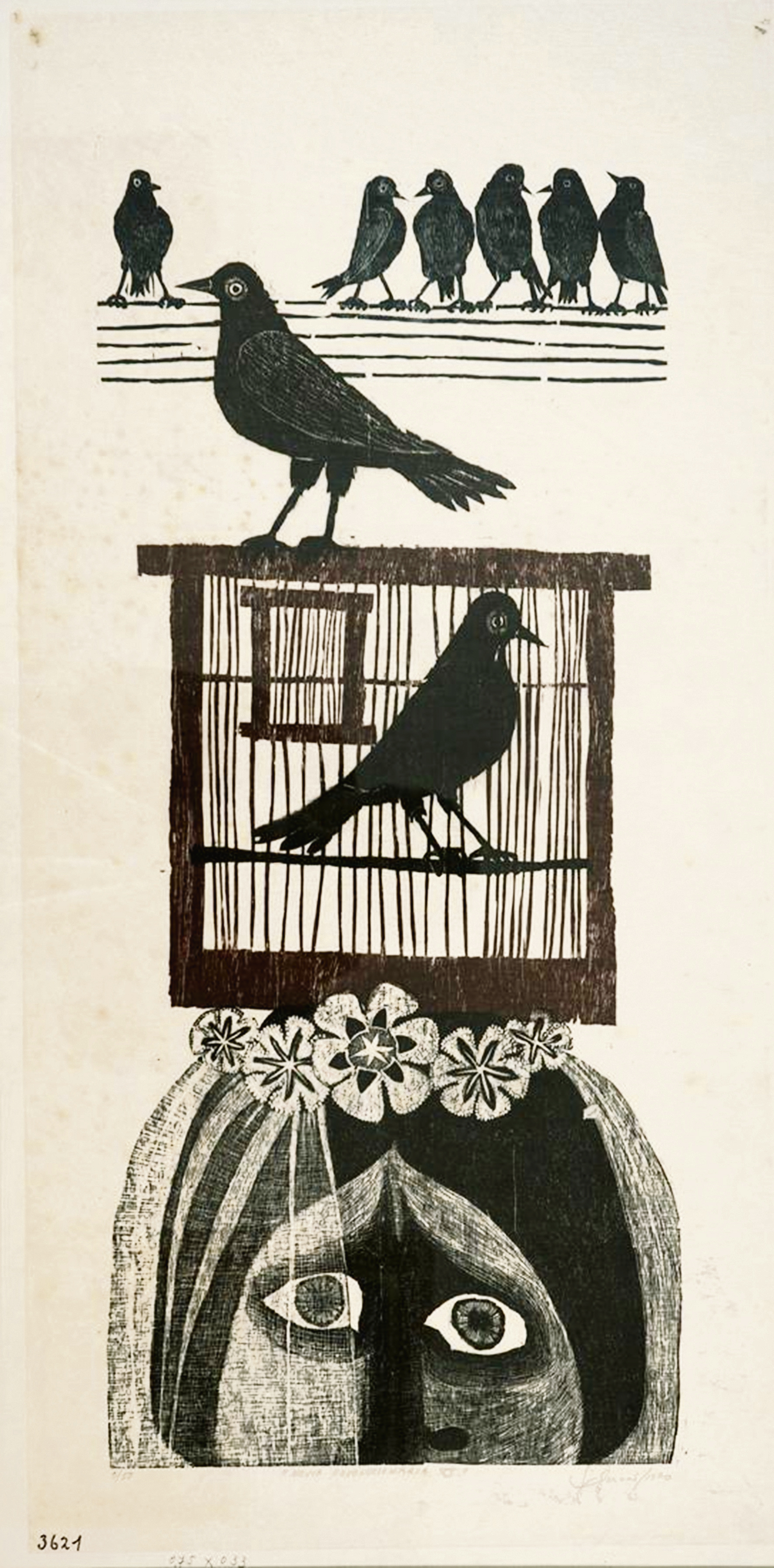 Leonilda González, _Novia revolucionaria XI_, 1969, xilografía sobre papel, 75 x 32 cm.