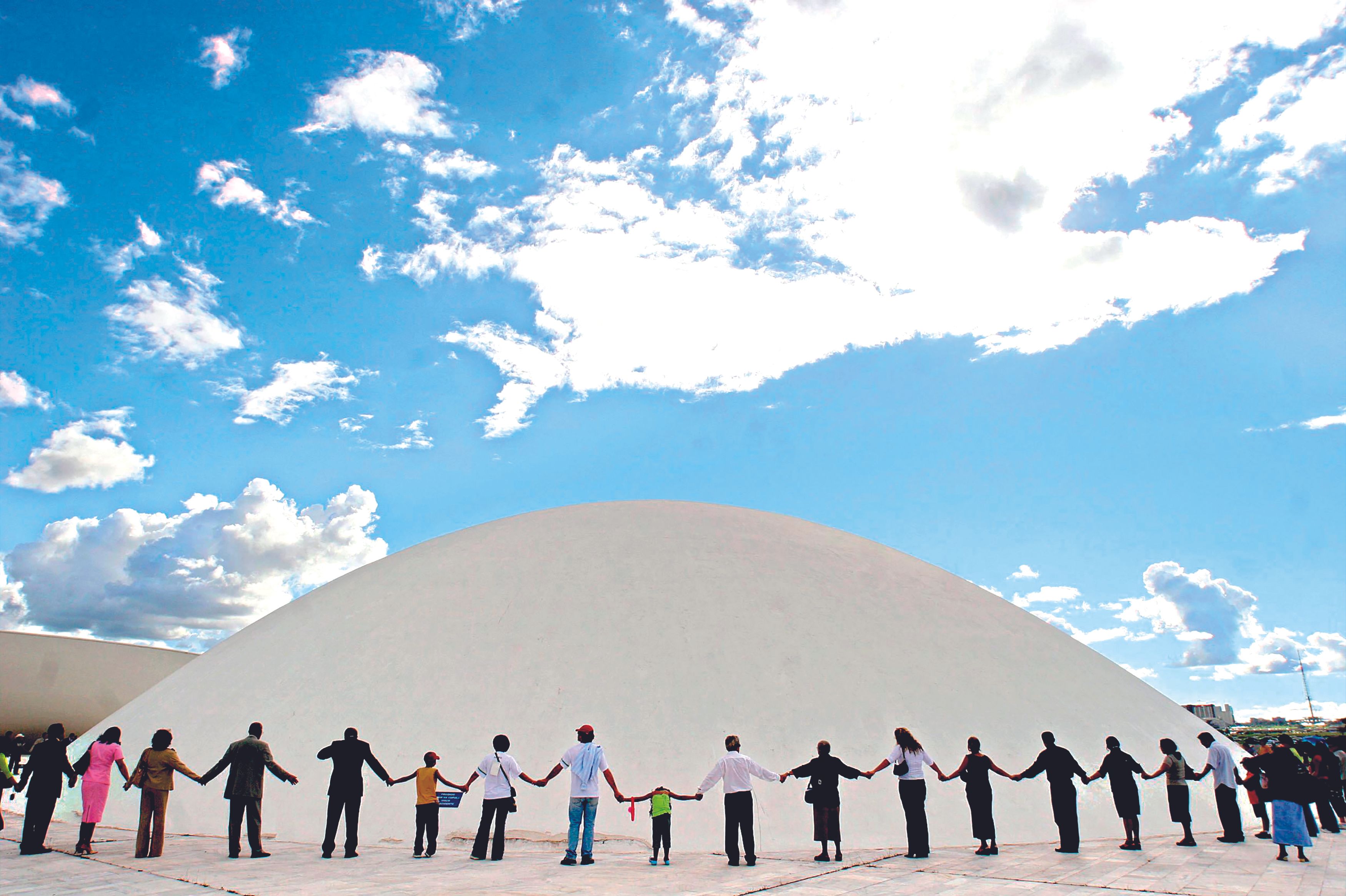 Evangelistas alrededor de la cúpula del Congreso Nacional de Brasil, el 10 de marzo de 2005, en Brasilia.