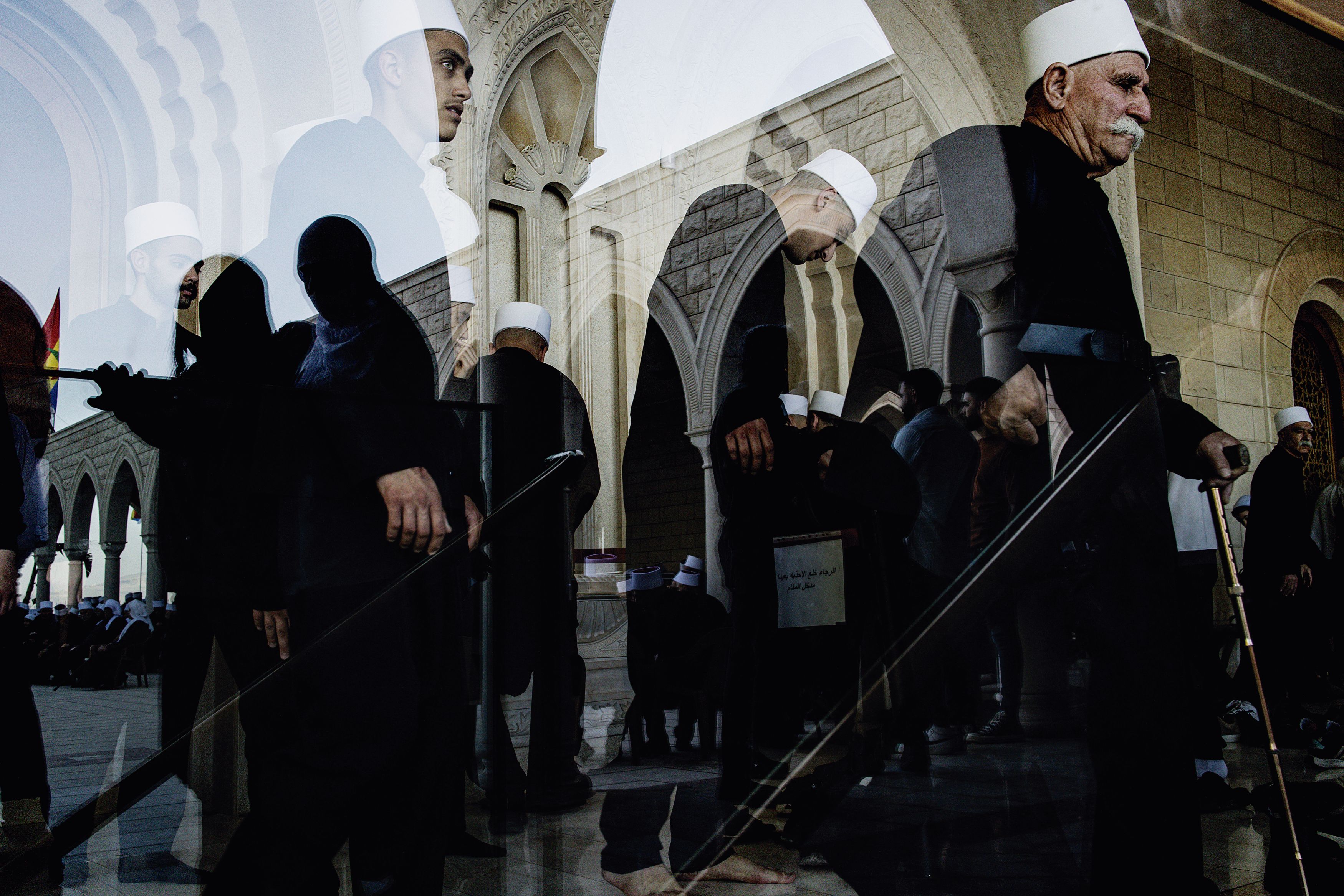 Reunión de clérigos drusos sirios hacia la tumba de Nabi Shuaib, en el norte de Israel, el 14 de marzo, para la primera peregrinación de su comunidad al venerado santuario en décadas.