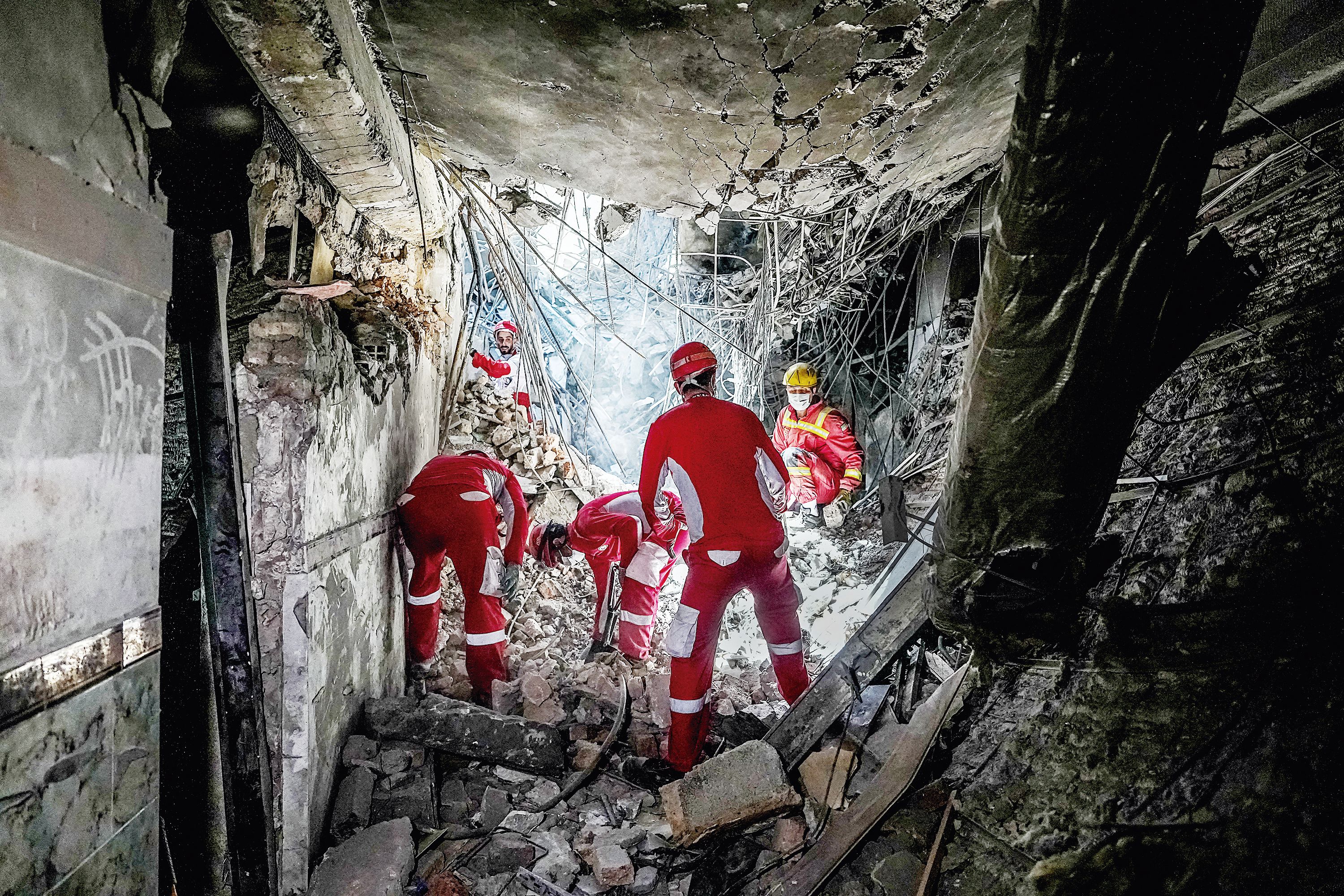 Rescatistas entre los escombros del complejo penitenciario de Evin, en Teherán, que fue alcanzado por un ataque israelí, el 23 de junio.