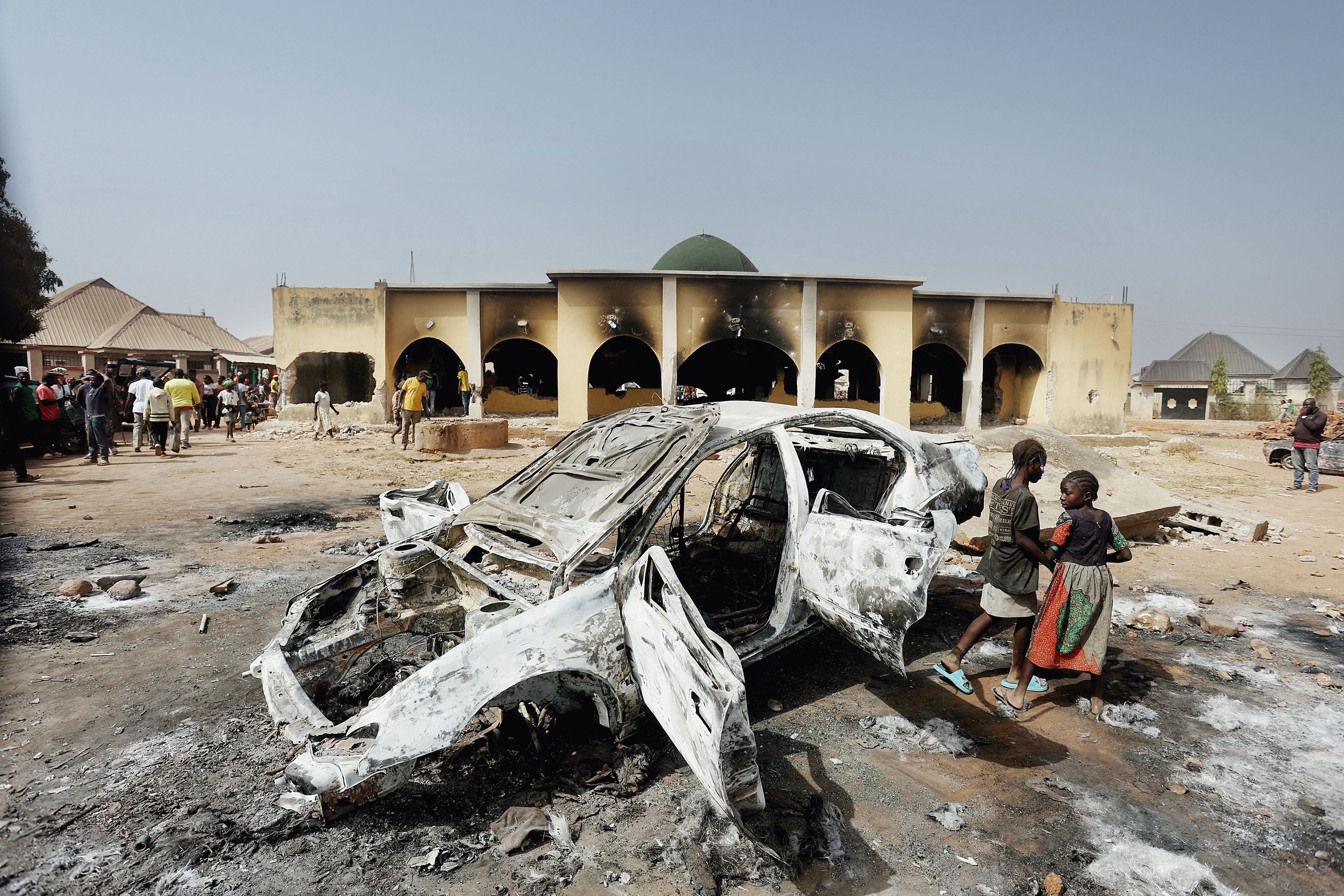 Incendio en la Mezquita Central de Bungha, en Mangu localidad del estado de Plateau, en Nigeria, el 2 de febrero de 2024, tras semanas de violencia intercomunitaria y disturbios.