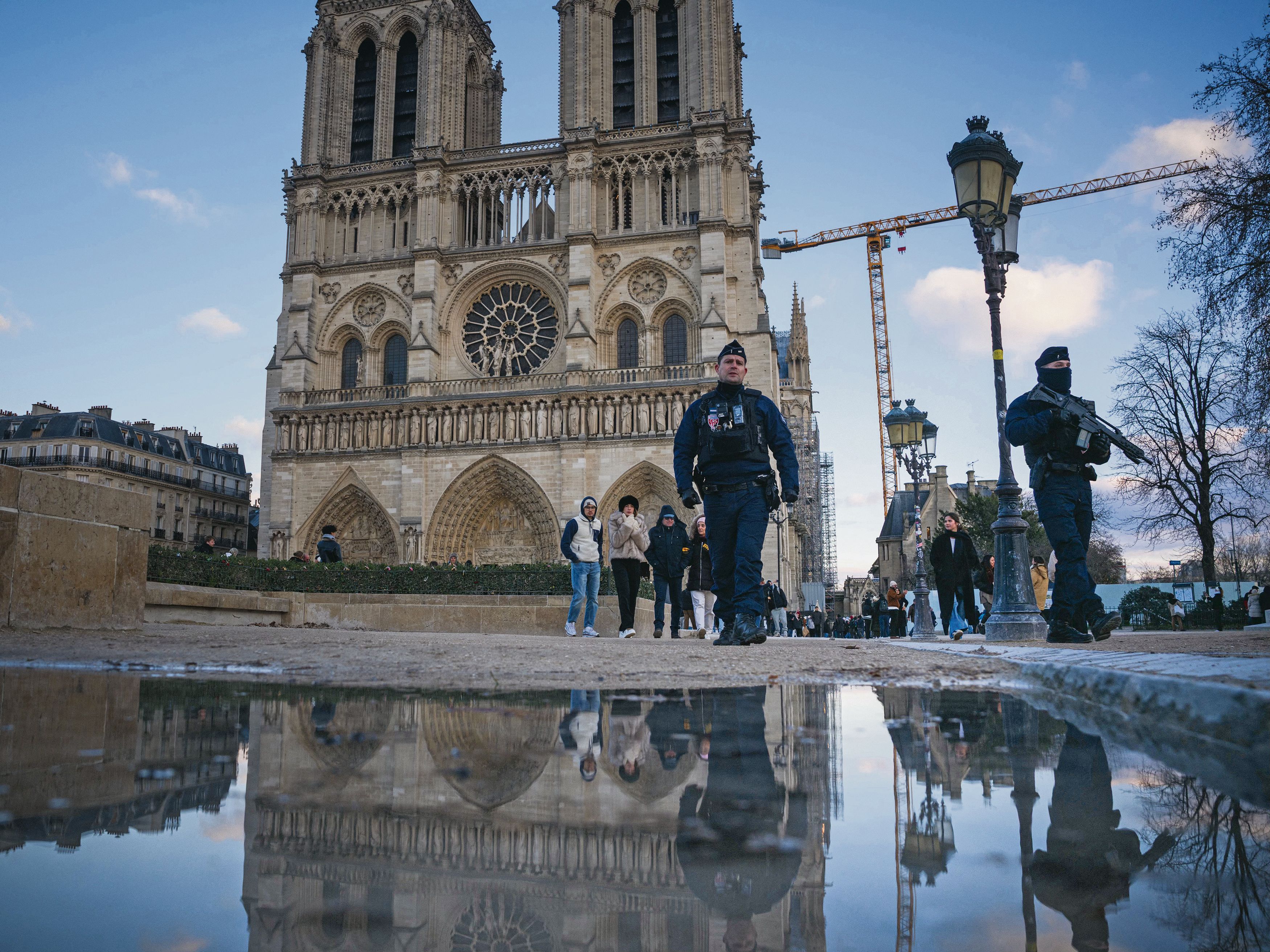 Agentes de policía patrullan en el centro de París, el 24 de diciembre de 2025.