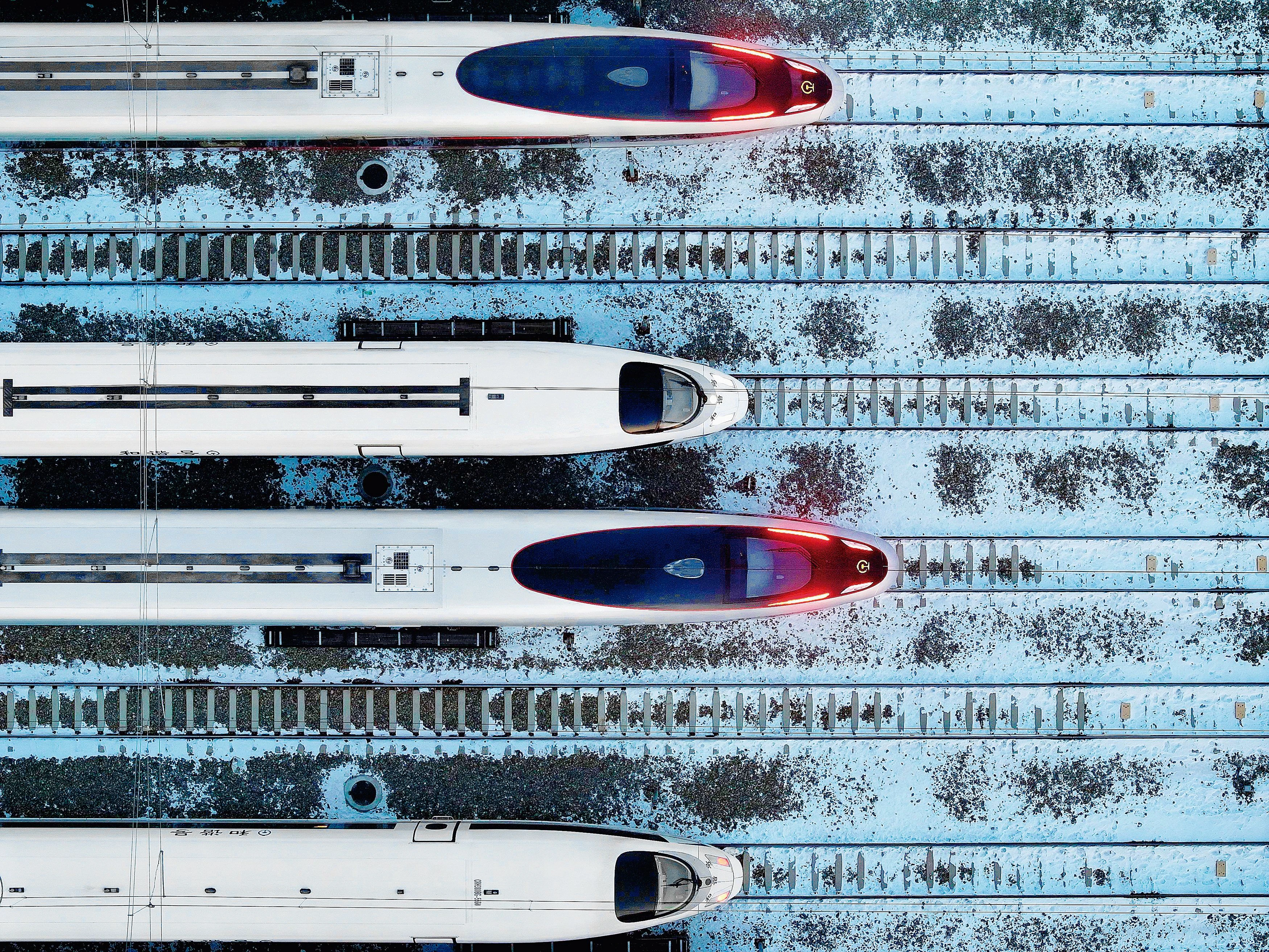 Trenes de alta velocidad en la estación ferroviaria de Harvin, provincia de Heilongjiang, noreste de China, el 4 de febrero.