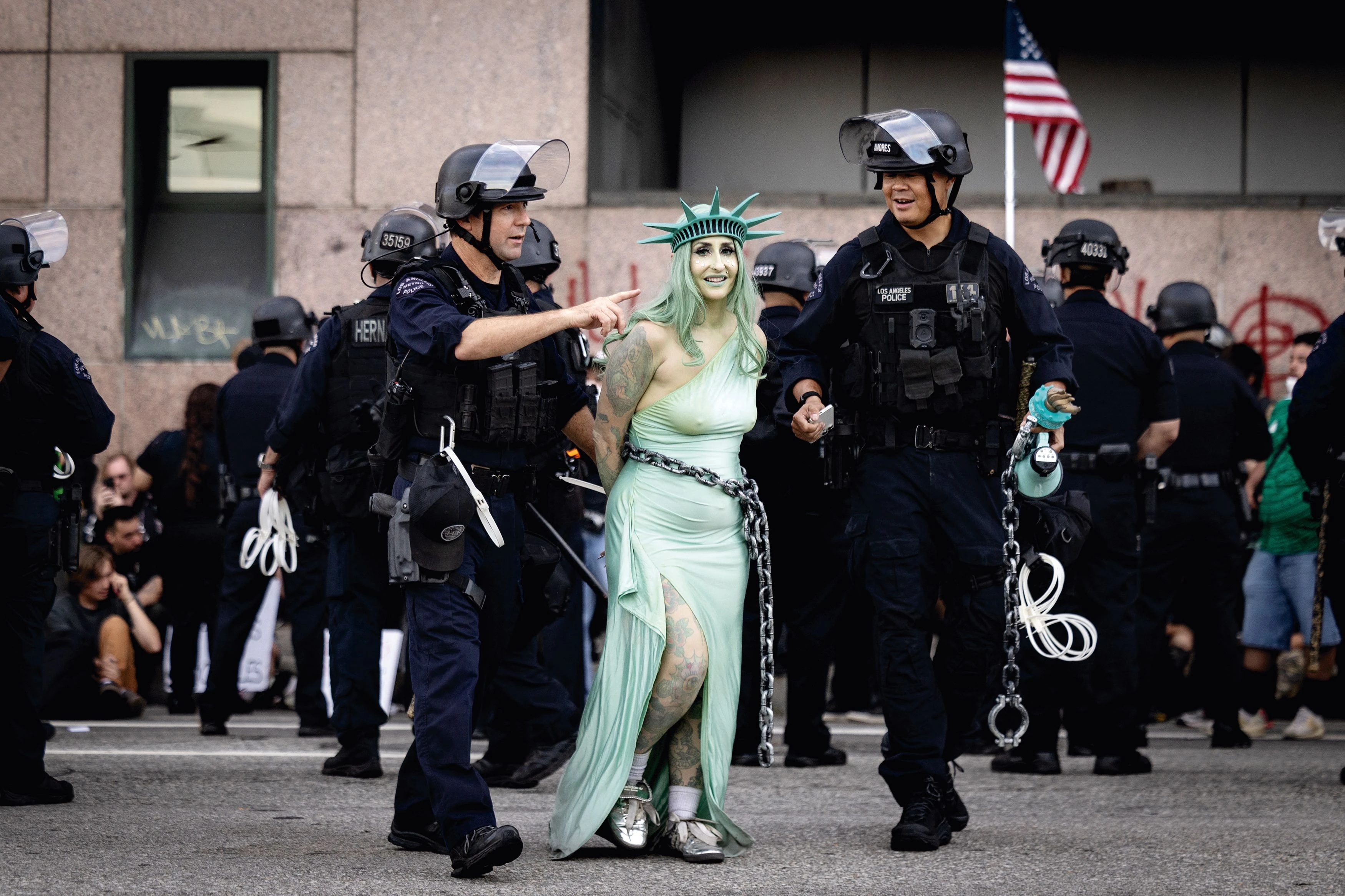 Arresto de manifestantes durante la jornada nacional de protesta “No Kings” contra Donald Trump, en Los Ángeles, Estados Unidos, el 28 de marzo.