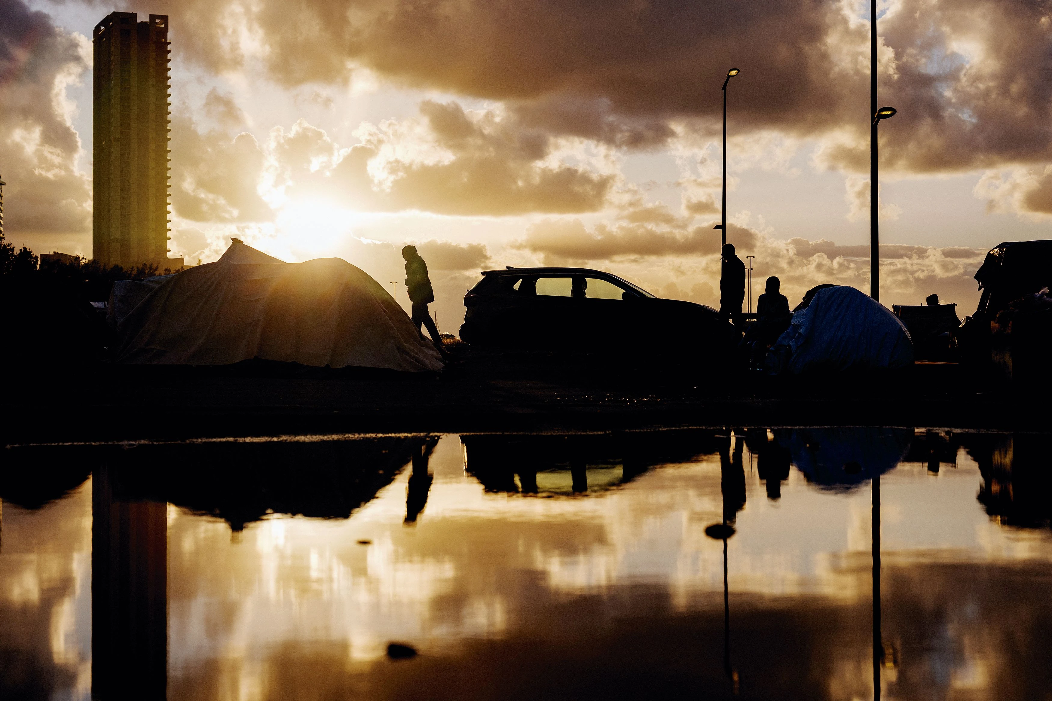 Personas desplazadas en la zona costera de Beirut, el 30 de marzo, tras los ataques aéreos de Israel contra el sur de Líbano.