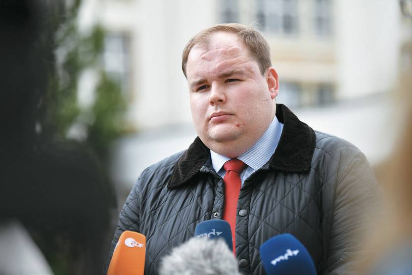 Torben Braga, vocero del grupo parlamentario de Alternativa para Alemania, habla con periodistas, en Érfurt, Turingia, el 16 de julio de 2021.