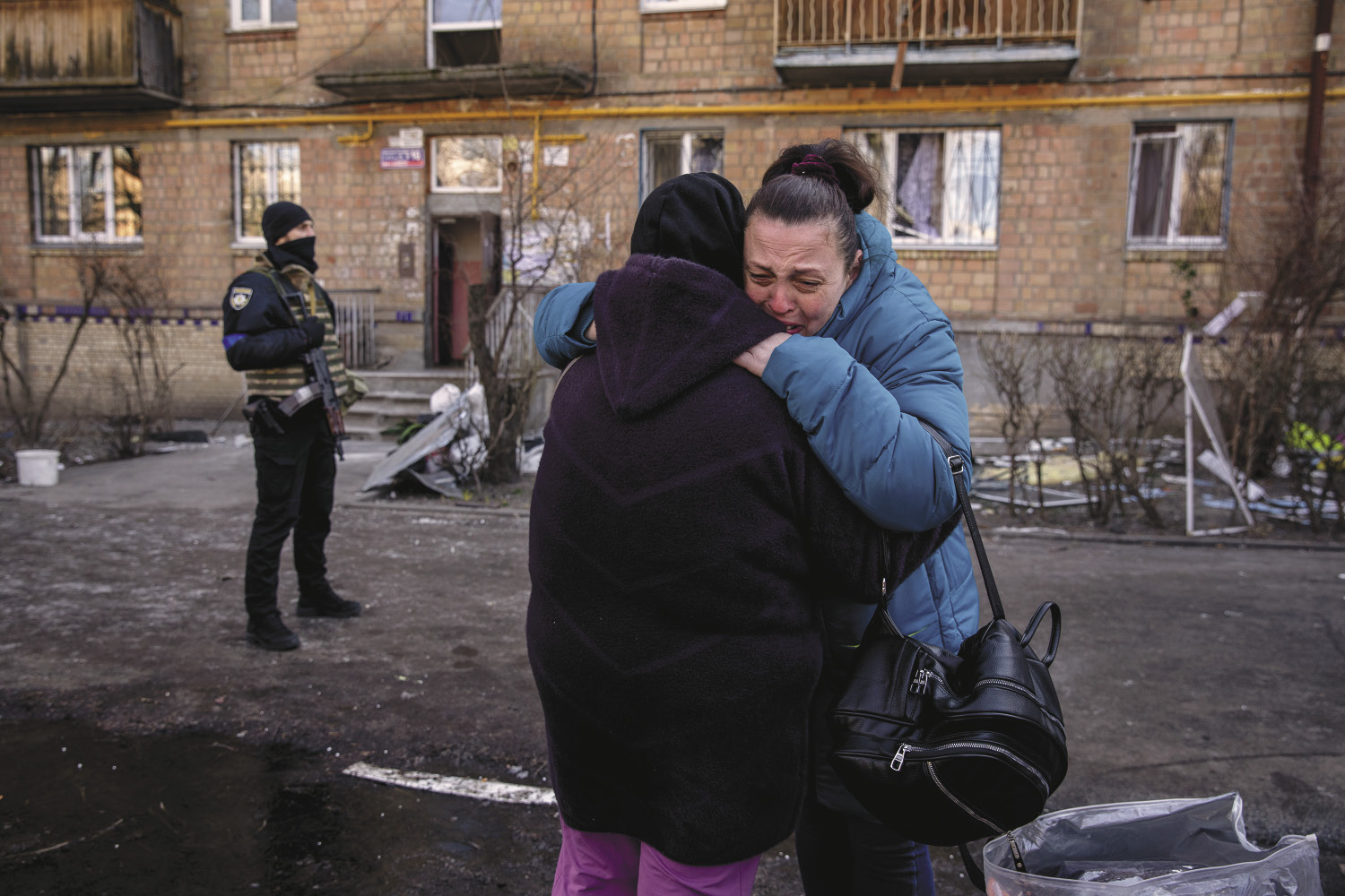 Distrito de Podilskyi, en Kiev, después de que un edificio fuera bombardeado.
