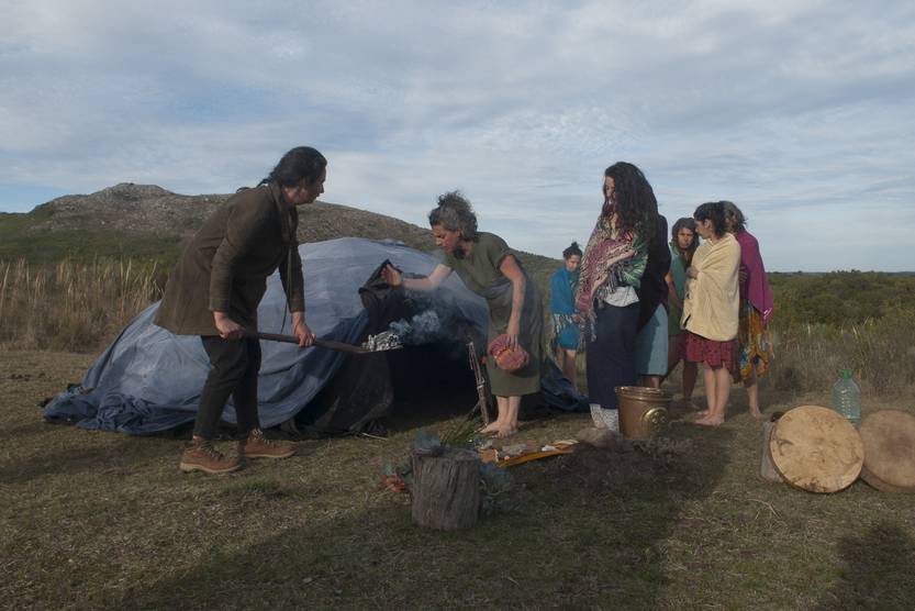 Ludmila se purifica con las hierbas para comenzar el temazcal.