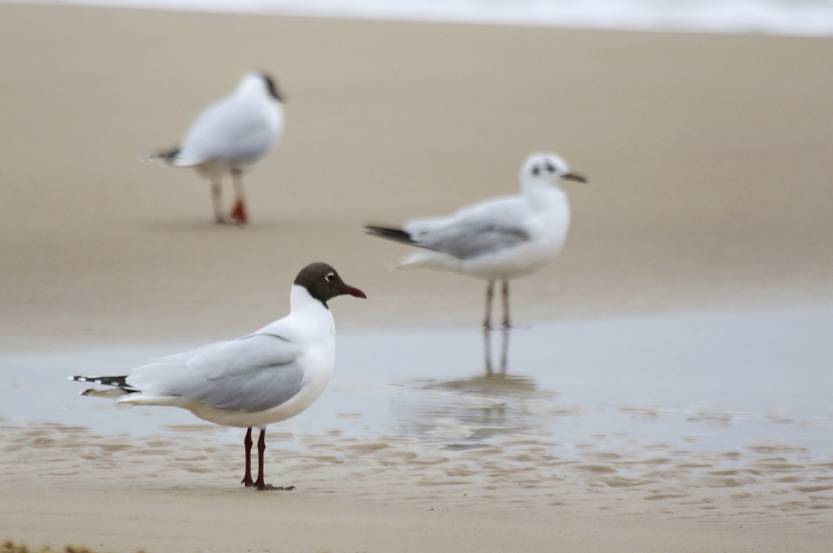 Las gaviotas que tienen la capucha café son adultos que están listos para reproducirse. Los juveniles tienen la cabeza clara.