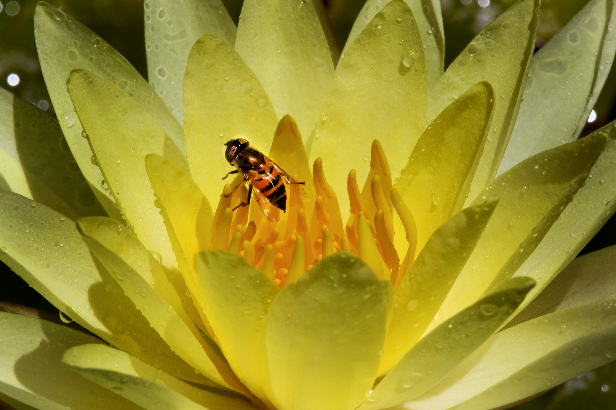 A pesar del buen disfraz de la mosca abeja, al tener sólo dos alas, se descubre que es una mosca.