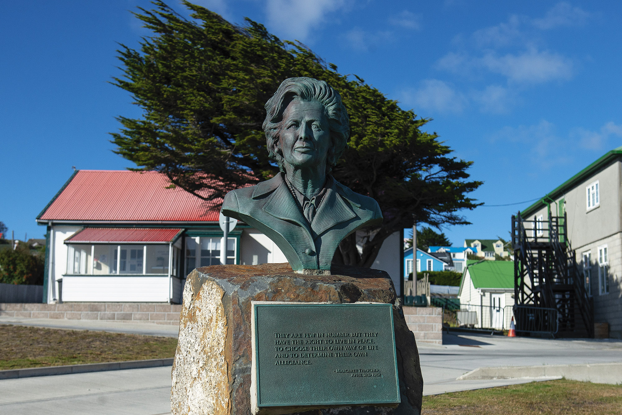Monumento a Margaret Thatcher en Puerto Argentino/Stanley.