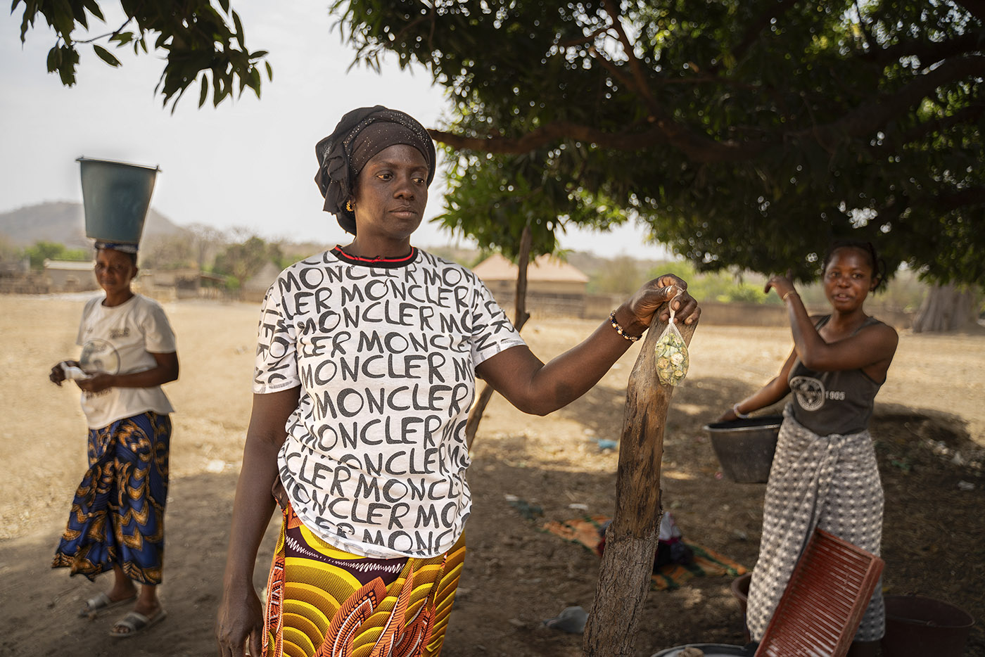 Mujeres lavando ropa en la aldea Ibel. Cargan varios baldes con agua hacia un árbol de mango que dé sombra y están varias horas ahí.