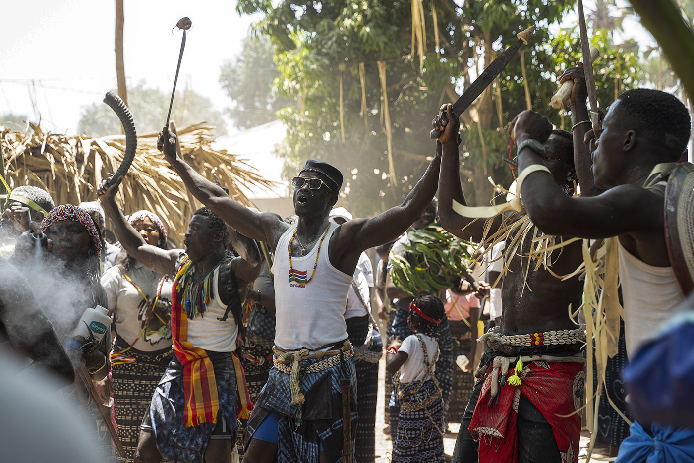 Hombres de la etnia diola en una ceremonia de iniciación, en la región de Casamanza.