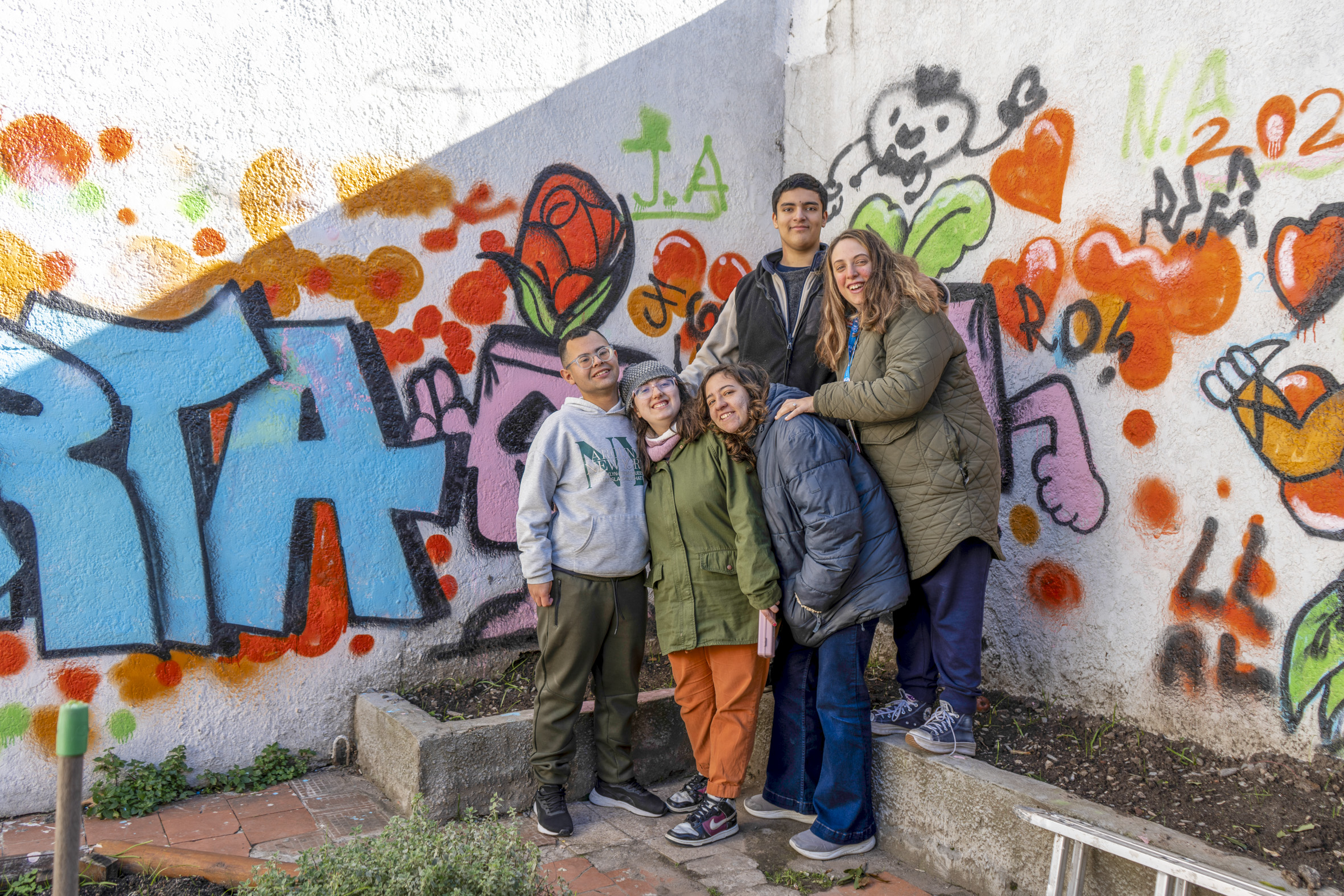 Juan Andrés, Ivanna, Felipe, Lucía y Cecilia en la huerta.