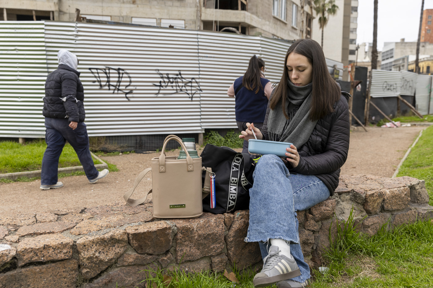 Avril durante su almuerzo en la plazuela Organización Libre del Trabajo.