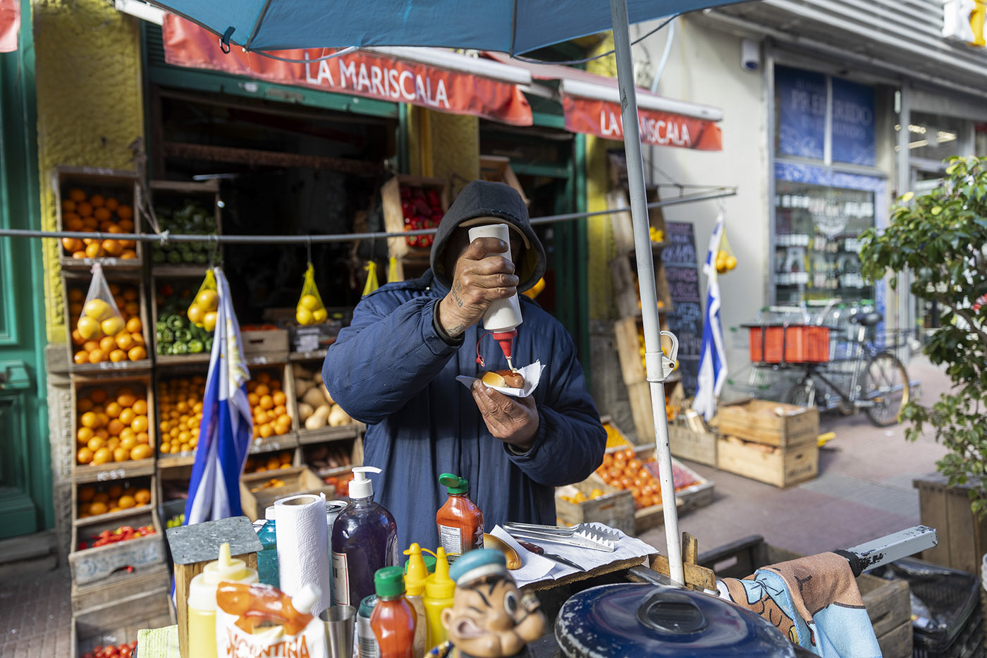 Jorge Guevara en su puesto sobre la peatonal Pérez Castellano.