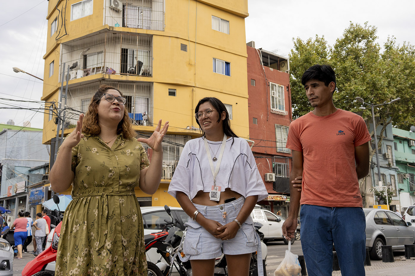 Feria Latina, donde se comparten algunas consignas del tour y un poco de historia. Messa Mugica es un proyecto llevado adelante por Laura Sejas (a la izquierda) y Patricia Esteche en la Villa 31.
