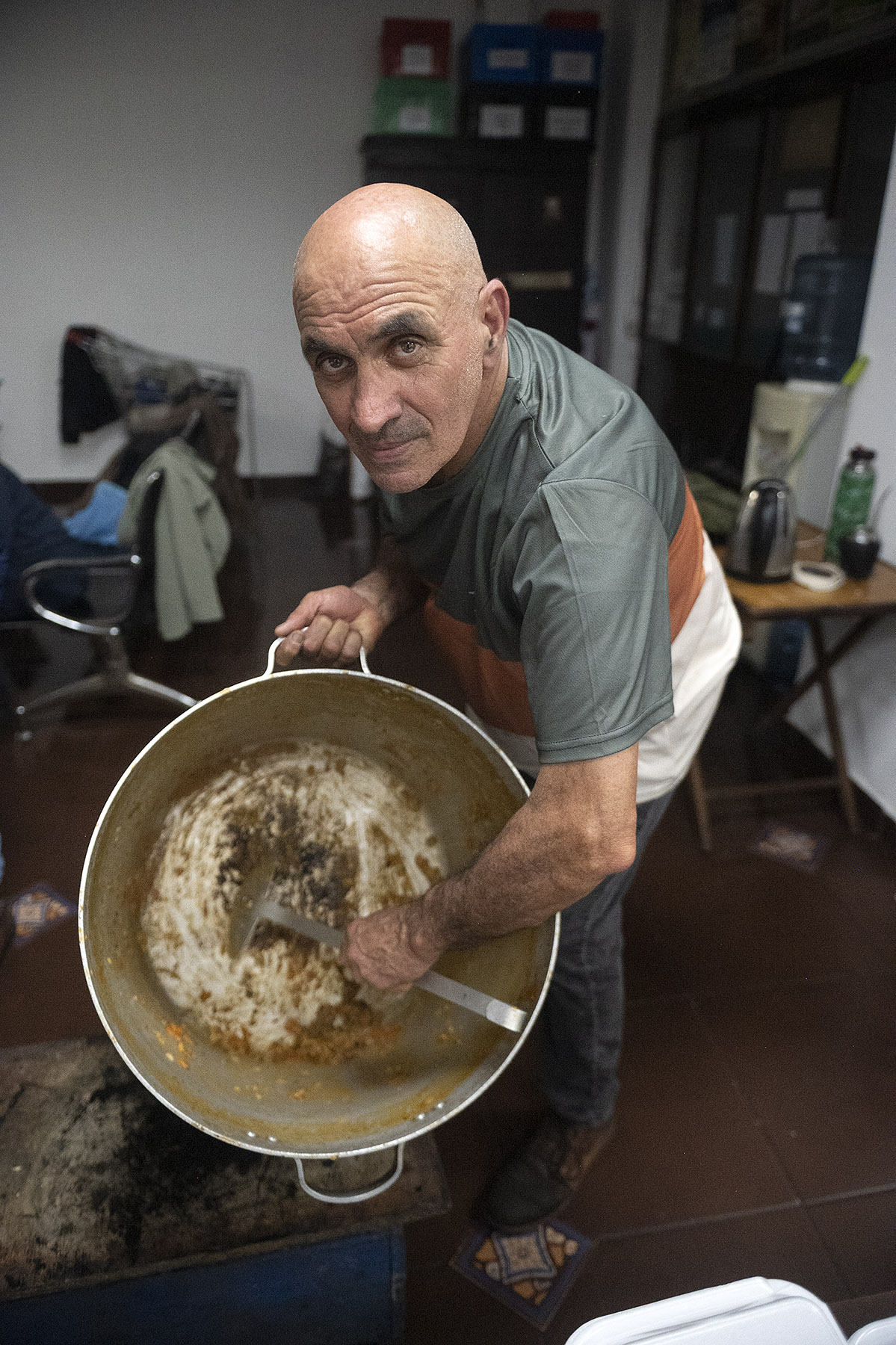 Vladimir al finalizar una jornada en la olla popular de Ciudad Vieja, en la sede del Sindicato Único de Trabajadores del Mar y Afines.