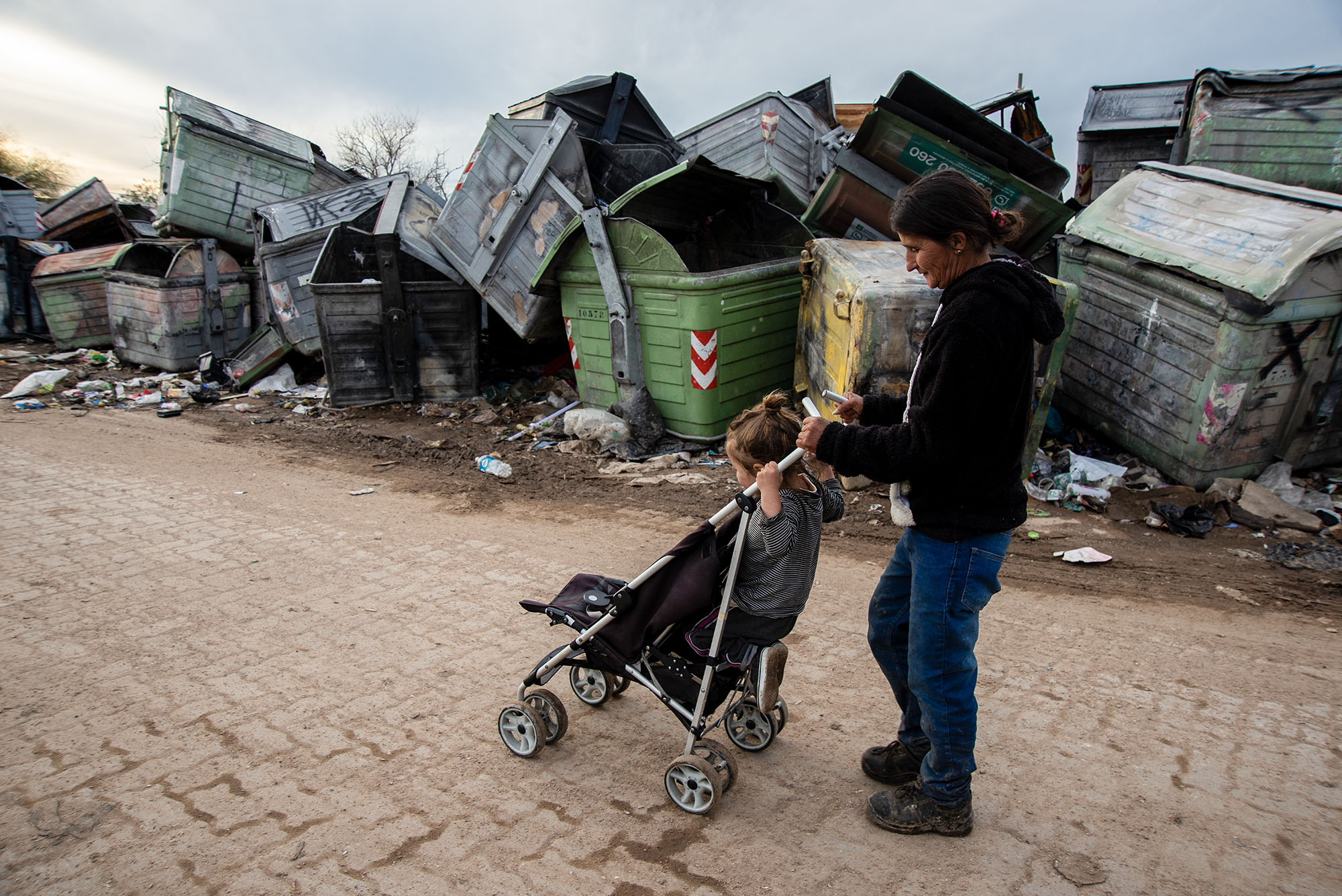Estela, junto a uno de sus hijos, en la usina de Felipe Cardozo, setiembre de 2023.