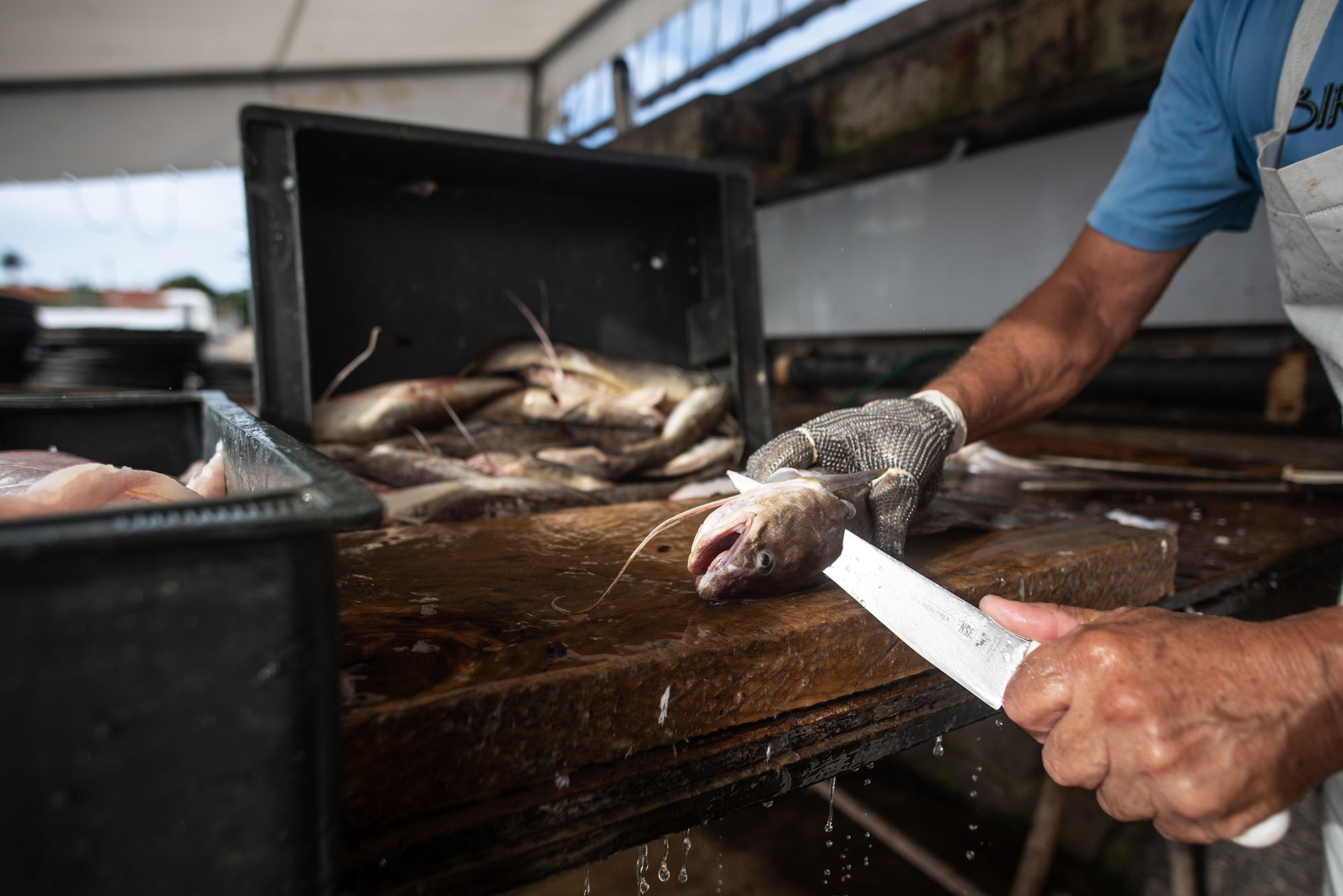 Fileteo de brótola en el puerto de Punta del Este.