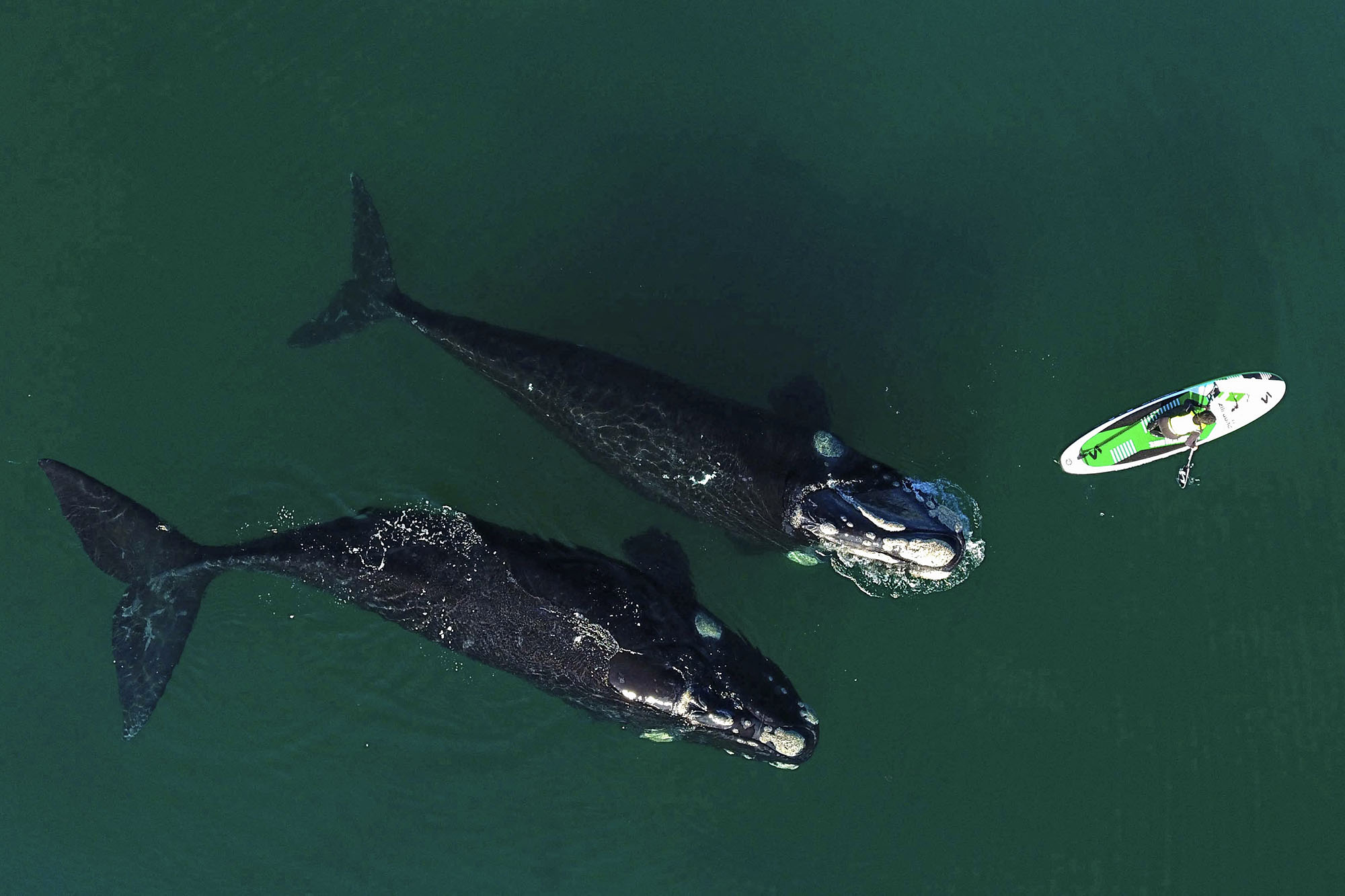 Ballenas francas australes en el Golfo Nuevo, Puerto Madryn, Argentina, el 21 de agosto de 2021.
