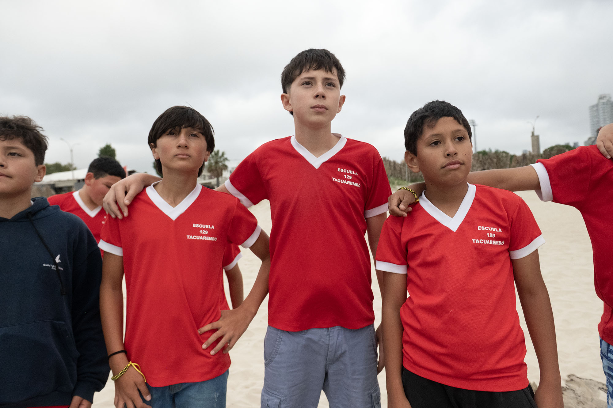 Niños de la Escuela 129 de Tacuarembó en la playa Ramírez, Montevideo.