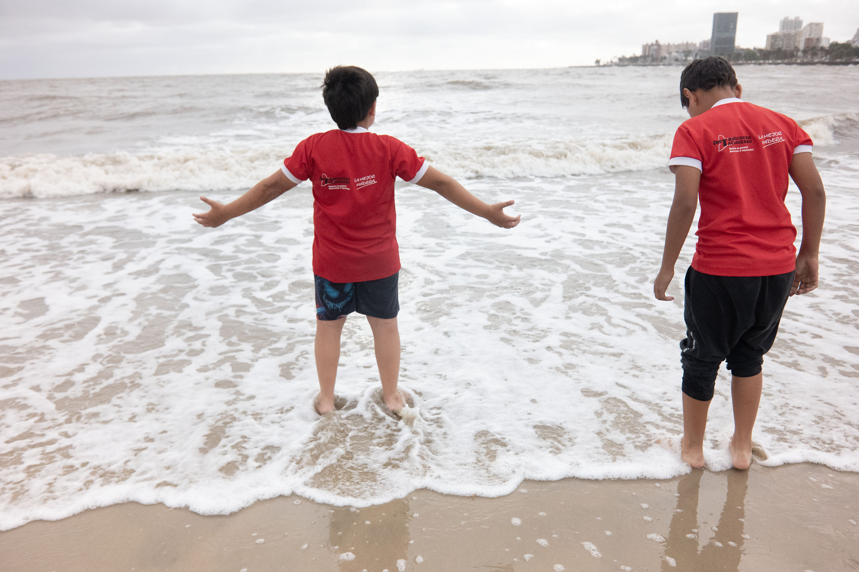Niños de la Escuela 129 de Tacuarembó en la playa Ramírez, Montevideo.