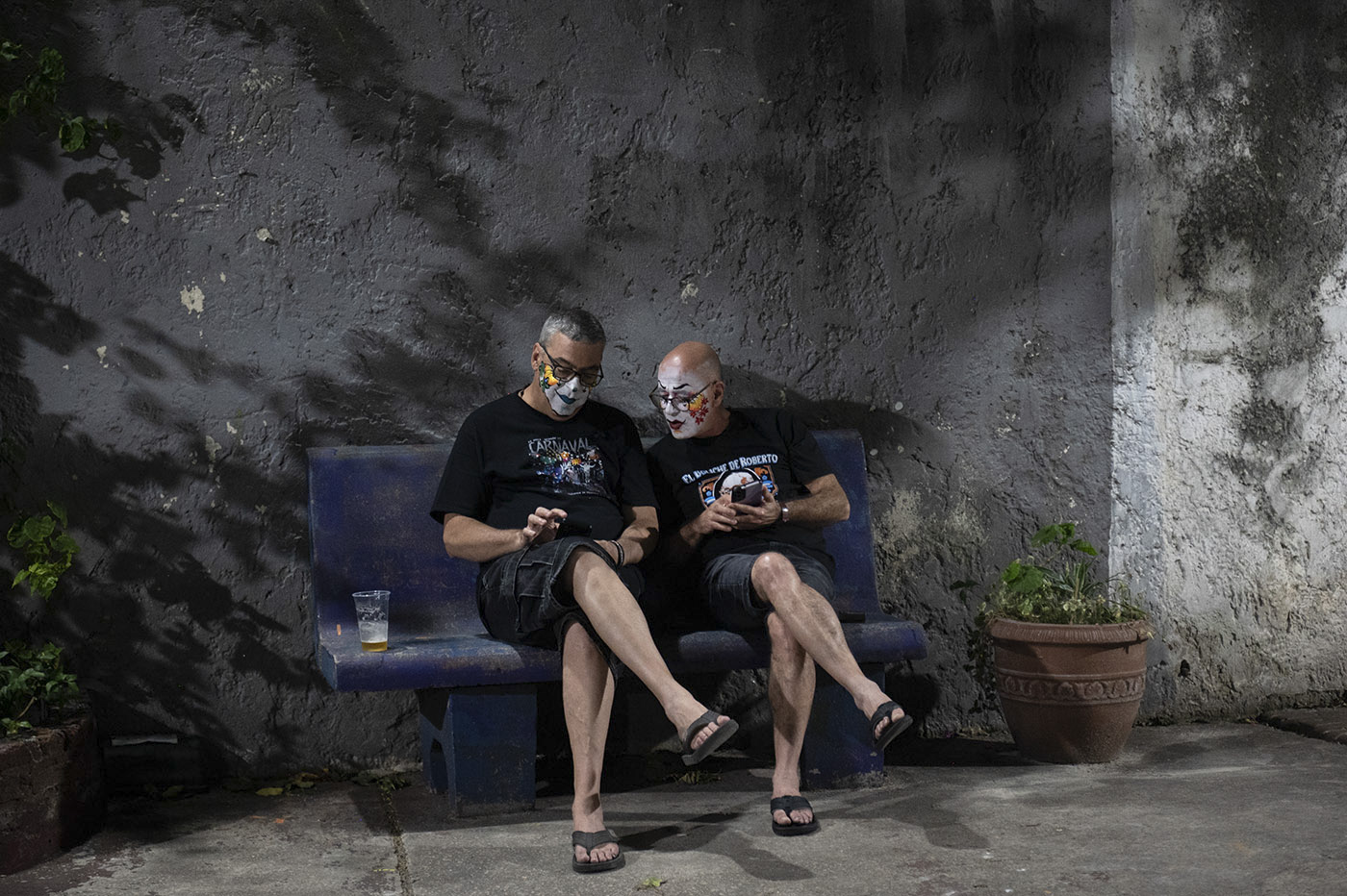 Pablo _Pinocho_ Routin y Eduardo _Pitufo_ Lombardo en la Agrupación de Funcionarios de UTE previo al Desfile Inaugural del Carnaval.