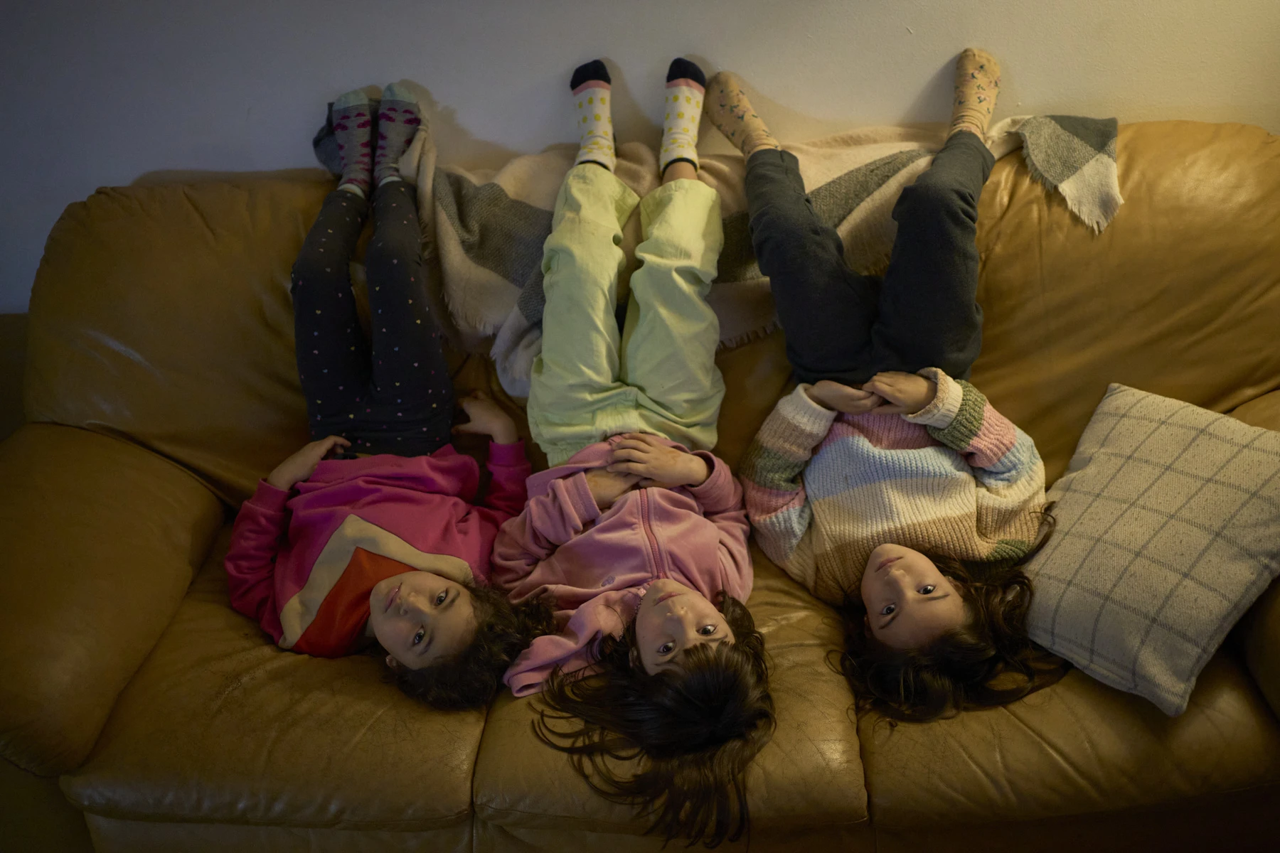 Guadalupe Álvarez, Juana Brum y Bruna Aristeguieta en la casa de Juana. Las tres son hijas de amigos que crecieron en el Complejo, se fueron y luego volvieron a vivir allí con sus familias.