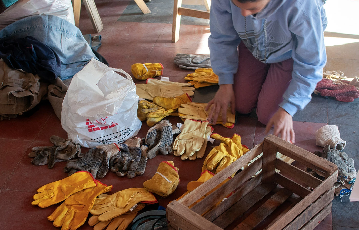 La Comisión de Cocina y Cuidados, compuesta por hombres y mujeres, organiza las donaciones, procesa los alimentos y acompaña a las niñeces.