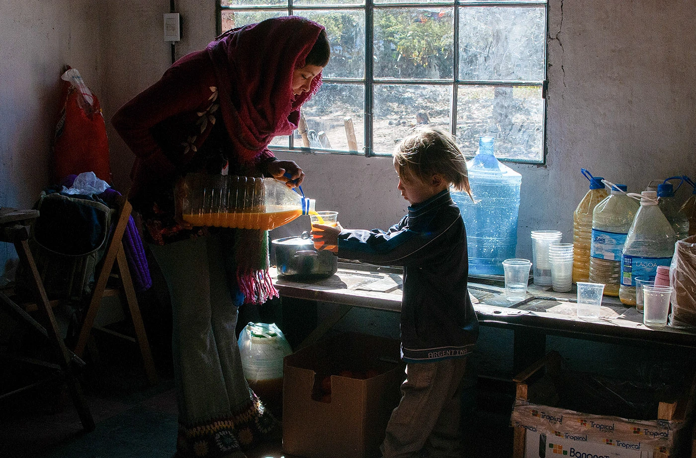 La Comisión de Cocina y Cuidados, compuesta por hombres y mujeres, organiza las donaciones, procesa los alimentos y acompaña a las niñeces.