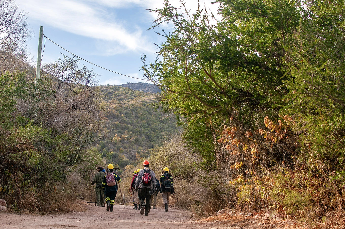 Equipo de brigadistas saliendo hacia el monte a hacer guardias nocturnas.