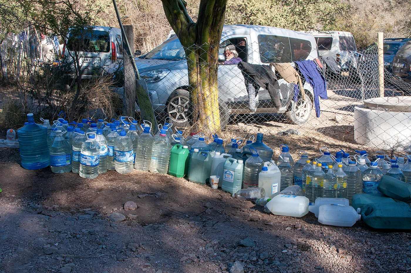 Durante los diversos incendios en Punilla se instaló la costumbre de dejar bidones con agua en la puerta de las casas o llevarlos a la bases operativas. Se usaban para cargar las mochilas aspersoras o para llevarlos en la mano si no se disponía de estas mochilas, que son muy caras. La mayoría de las herramientas, los alimentos y los medicamentos salió del aporte económico de quienes están lejos pero buscaron colaborar a través de las direcciones de Instagram de las diversas brigadas.