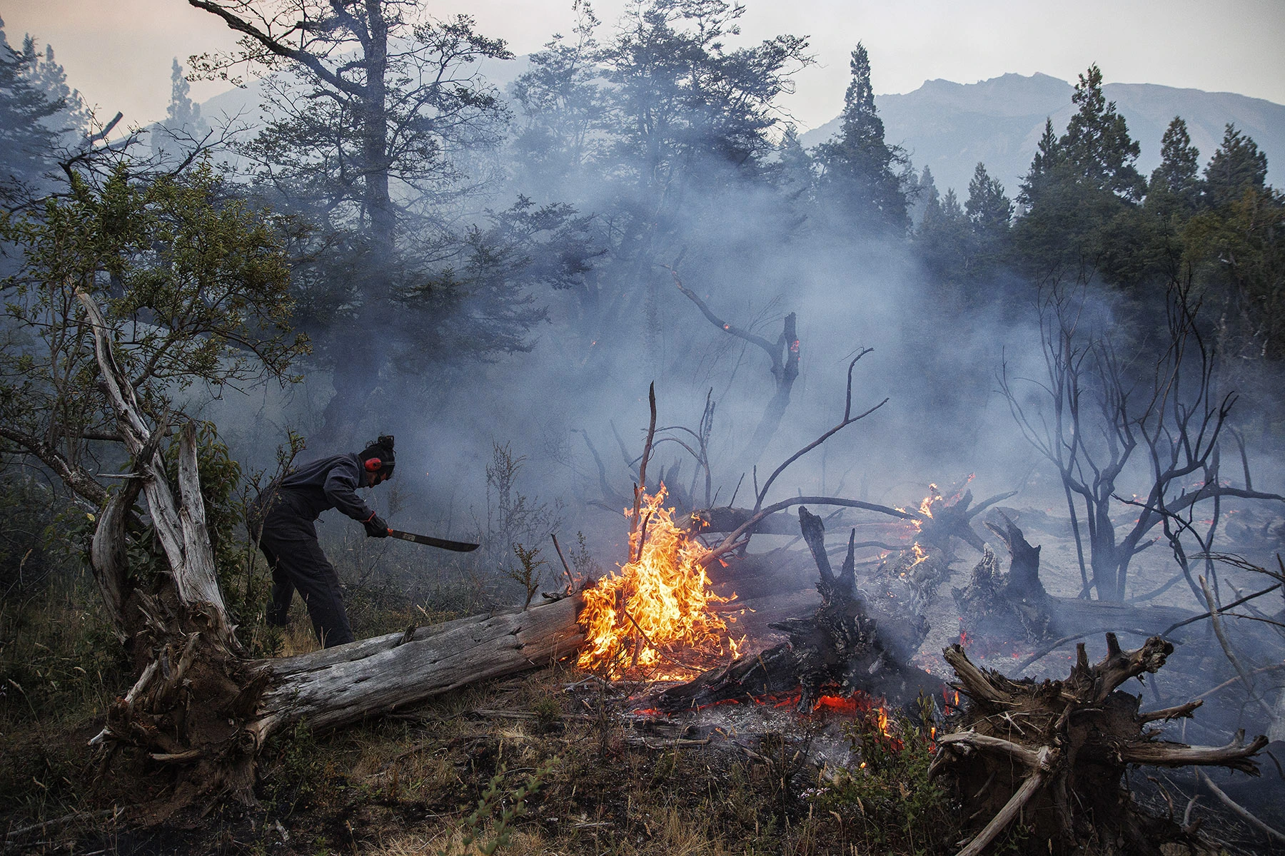 Brigadistas autoconvocados trabajan en el paraje El Coihue.