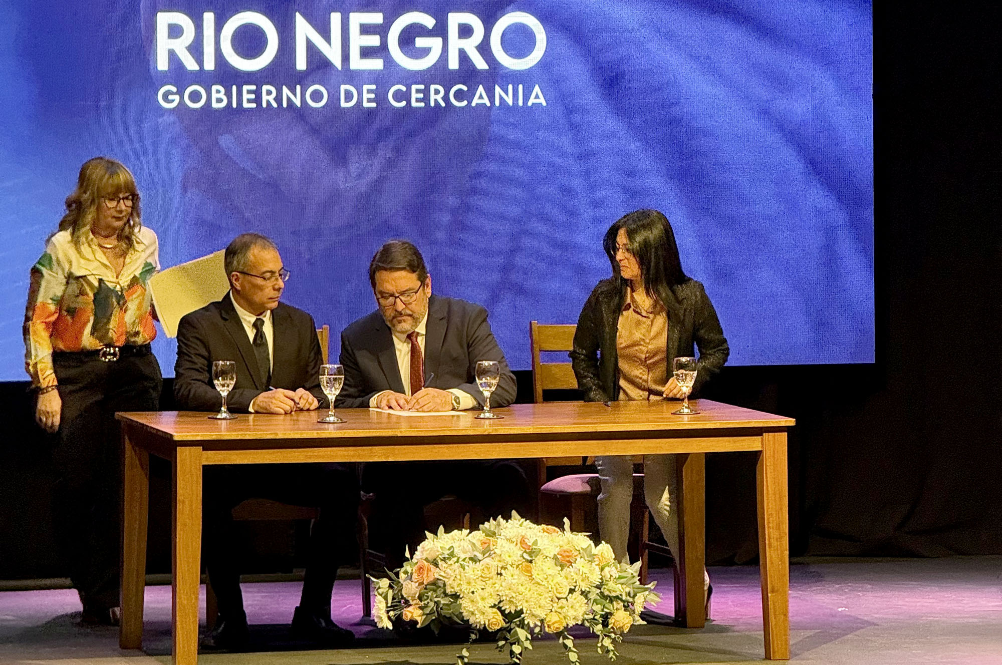Guillermo Levratto (c) en el acto de asunción, el 10 de julio, en el teatro Miguel Young de Fray Bentos.