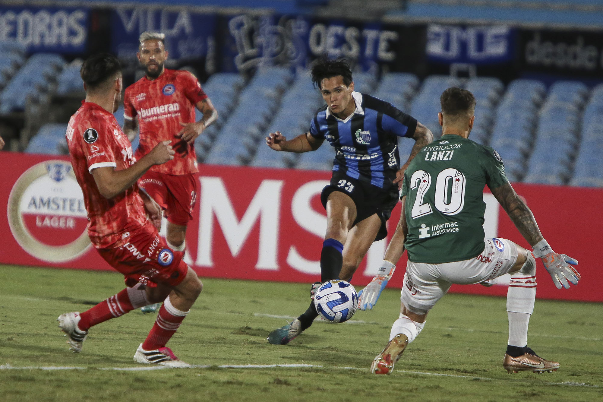 Rubén Bentancourt, de Liverpool, convierte ante Argentinos Juniors, en el estadio Centenario (02.05.2023).