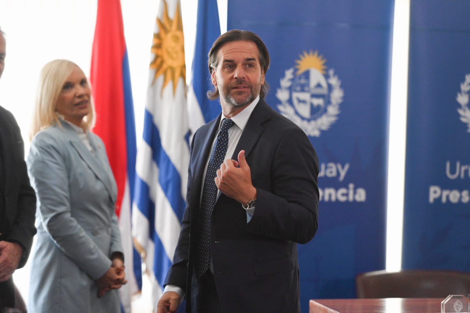 Traspaso de mando con vicepresidenta Beatriz Argimón tras la llegada de Luis Lacalle Pou al país, este sábado.