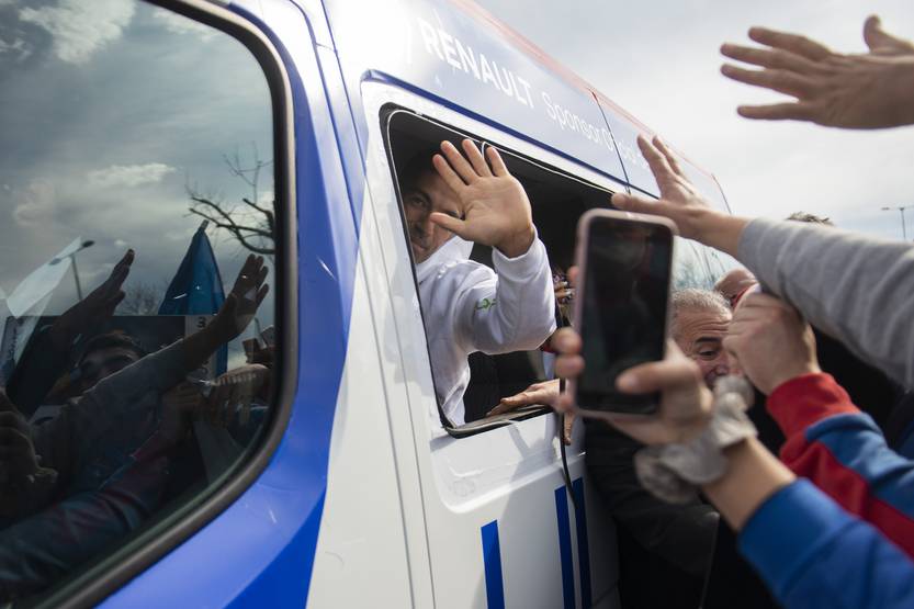 Luis Suárez al inicio de la caravana rumbo al Parque Central.