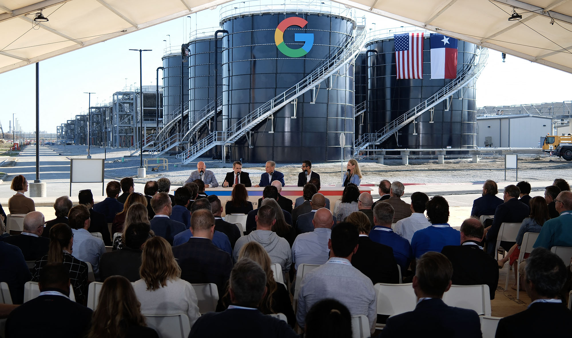 Greg Abbott, gobernador de Texas y Sundar Pichai, Ceo de Google, el 14 de noviembre, en el Data Center de Midlothian, Texas.