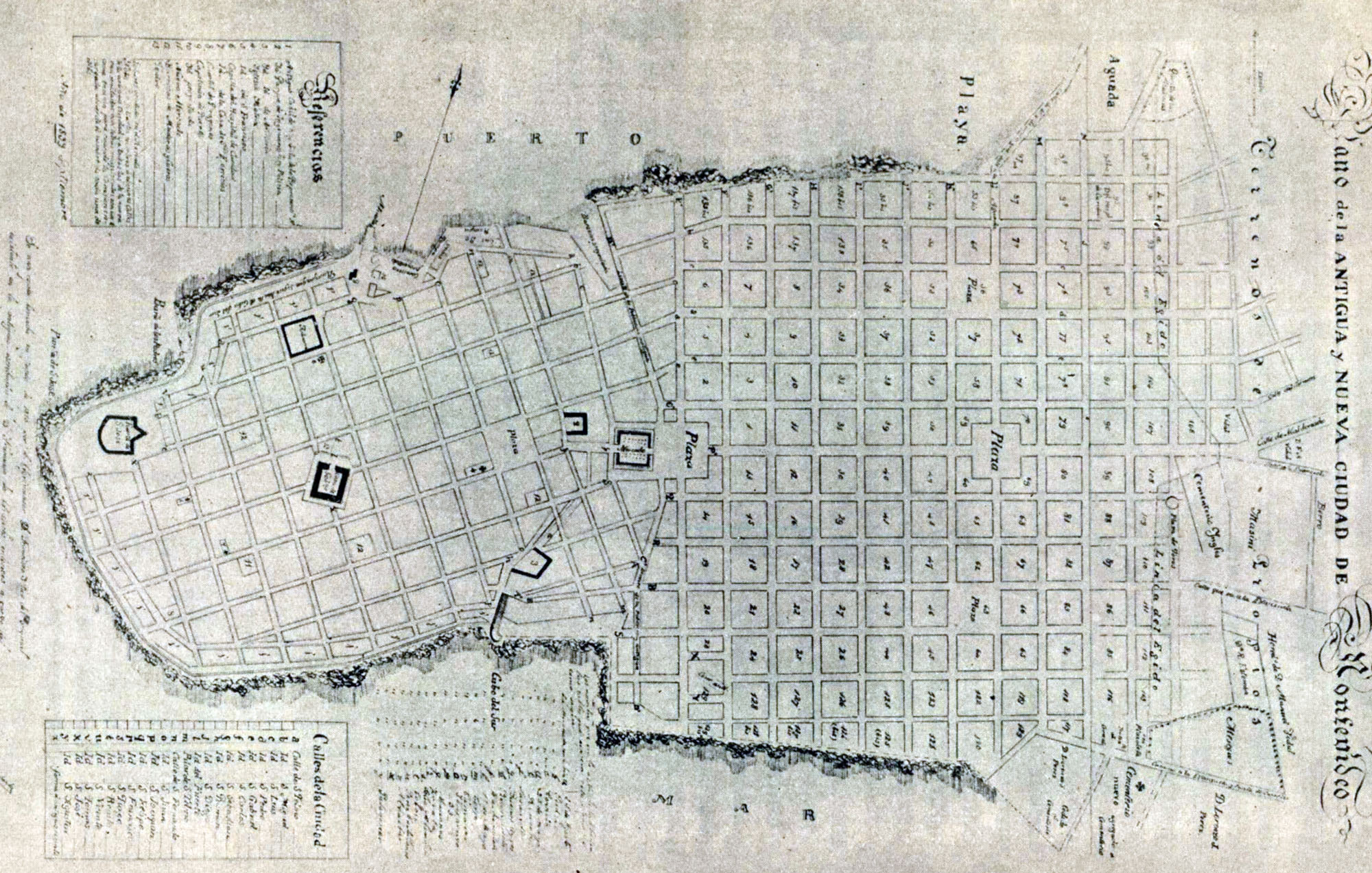 Mapa de 1839 con orientación de calle de la Ciudad Novísima (parte derecha de la imagen), tomado de Carlos Pérez Montero (1942).