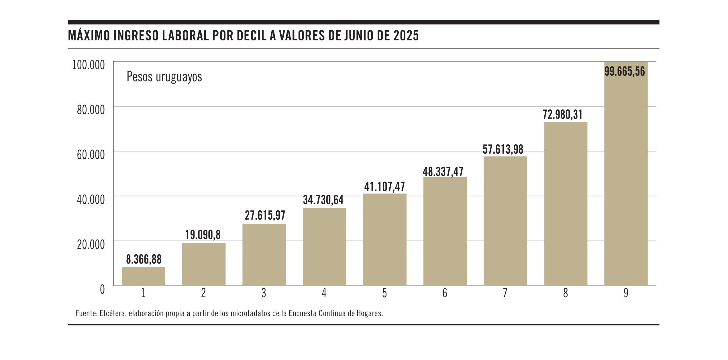 Máximo ingreso laboral por decil a valores de junio de 2025