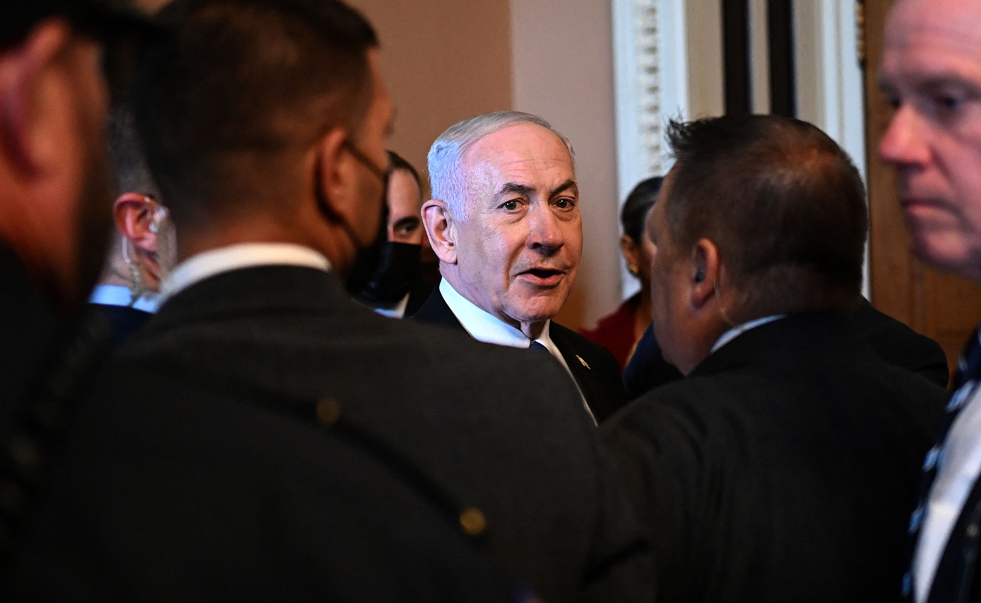 El primer ministro israelí, Benjamin Netanyahu, llega a una reunión con legisladores en el Capitolio de Estados Unidos en Washington.