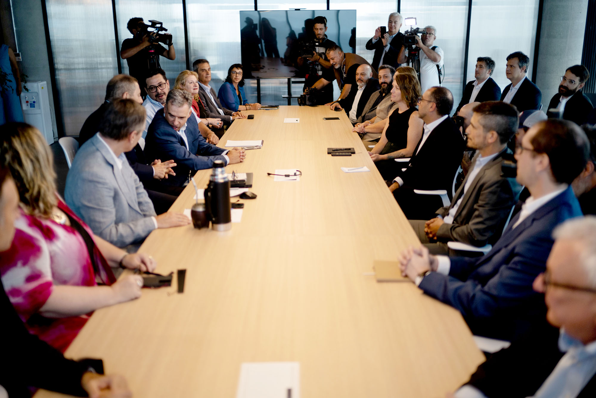 Primera reunión de nuevo equipo del Ministerio de Economía y Finanzas, ayer, en el edificio Plaza Alemana.