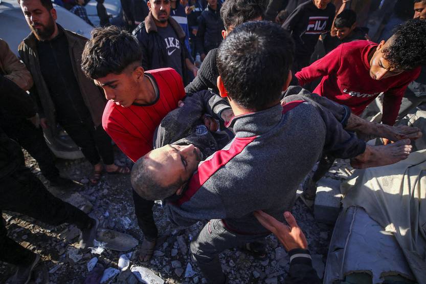 Un palestino herido es trasladado al hospital de Al Aqsa después de un ataque israelí contra una casa en Deir el-Balah, en el centro de la Franja de Gaza (10.01.2024).