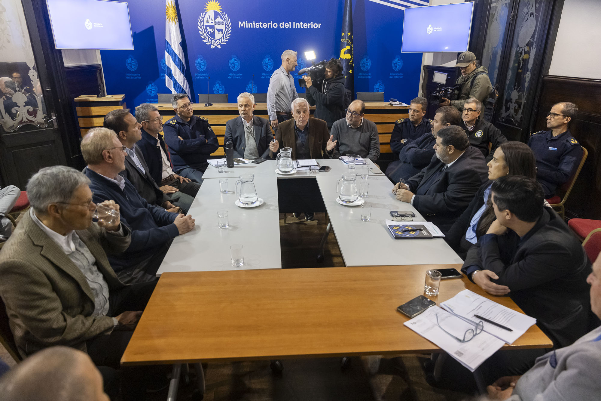 El ministro del Interior, Carlos Negro, reunido, el 9 de julio, con autoridades de la AUF y de los clubes Nacional y Peñarol, por los incidentes en el pasado clásico.