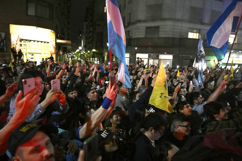 Partidarios de Javier Milei escuchan su discurso, en Buenos Aires (22.10.2023).