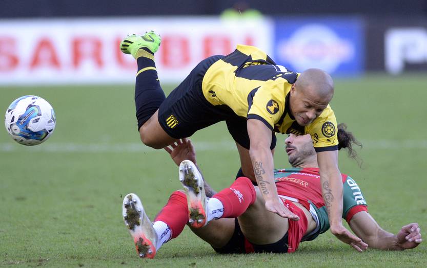 Carlos Sánchez, de Peñarol, y Gian Franco Allala, de Boston River, el 16 de julio.